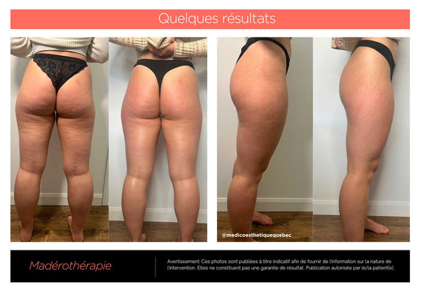 La madérothérapie offerte à la Clinique Médico-Esthétique de Québec peut offrir des résultats avant/après impressionnants, surtout pour le raffermissement, la réduction de la cellulite et le drainage lymphatique. Toutefois, les effets varient d'une personne à l'autre en fonction de nombreux facteurs. Pour maximiser les bénéfices, il est essentiel d’adopter un mode de vie sain et de suivre une cure adaptée.