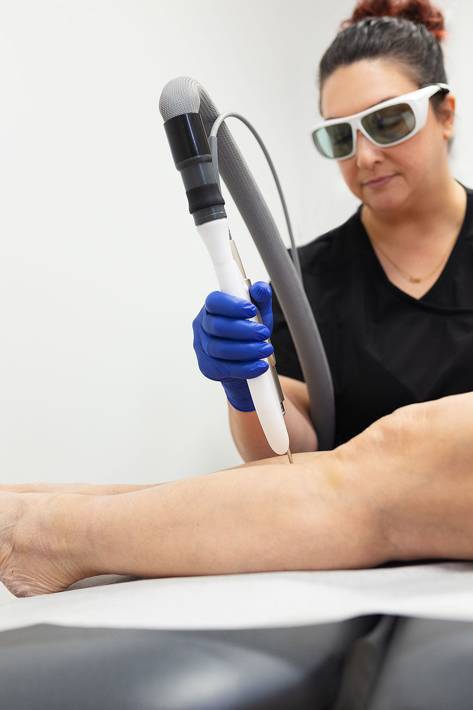Une fois la peau préparée, le laser sera appliqué de manière ciblée sur les varicosités. Une légère sensation de chaleur ou de picotement peut être ressentie pendant le traitement. Lors d'un traitement par injection (sclérothérapie), une échographie est réalisée pour contrôler la zone d'injection. Un léger pincement peut être ressenti. Des dispositifs de refroidissement peuvent être utilisés pour assurer votre confort pendant la procédure.